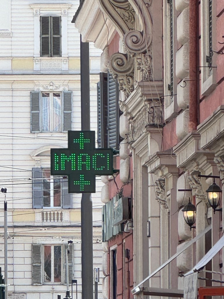 We met at 2.30 pm behind Castel S’Angelo. I emphasized some basics, like the need for promptness and that it is just fine for people to move through the city in pairs and threes or even solo. I tried to emphasize the continuous use and change of the functions of the buildings. My main meta-goal was just to ensure everyone was moving long enough to ensure the worst of the jetlag will pass in the night. I felt fairly guilty about the fatigue levels. It also seemed hard for the students to prioritize asking for food and water or even taking opportunities when offered. I think next year I will follow the same walking itinerary but ensure each apartment has a large bottle of water for each student and some basic lunch foods/snacks.