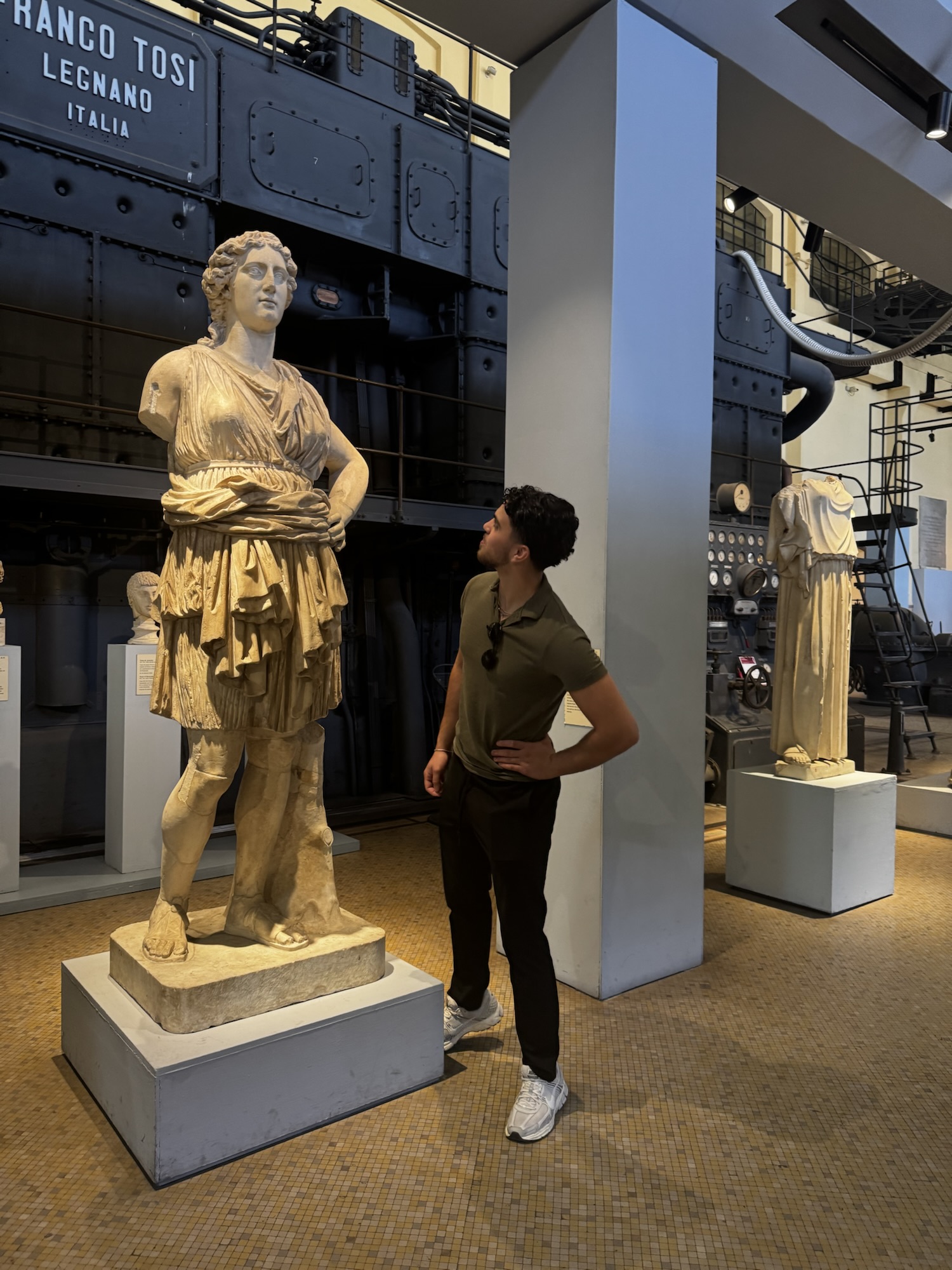 Upstairs the students fanned out and explored. A few still struggling with heat and jetlag sat and took it all in. Fair enough. I mingled, answered questions, and pointed things out one-to-one. I had been disappointed to do Montemartini before Villa Guilia because it didn’t fit with my chronological vision, but in someways it was the perfect first museum experience. We got to think about why things are displayed as they are, and the relationship of the past to the present or rather deep time to more recent past events. Lots of room to move and just experience the art without feeling ‘in the way’. The museum took us about 30 minutes less than anticipated and I could have made it faster if I had needed.