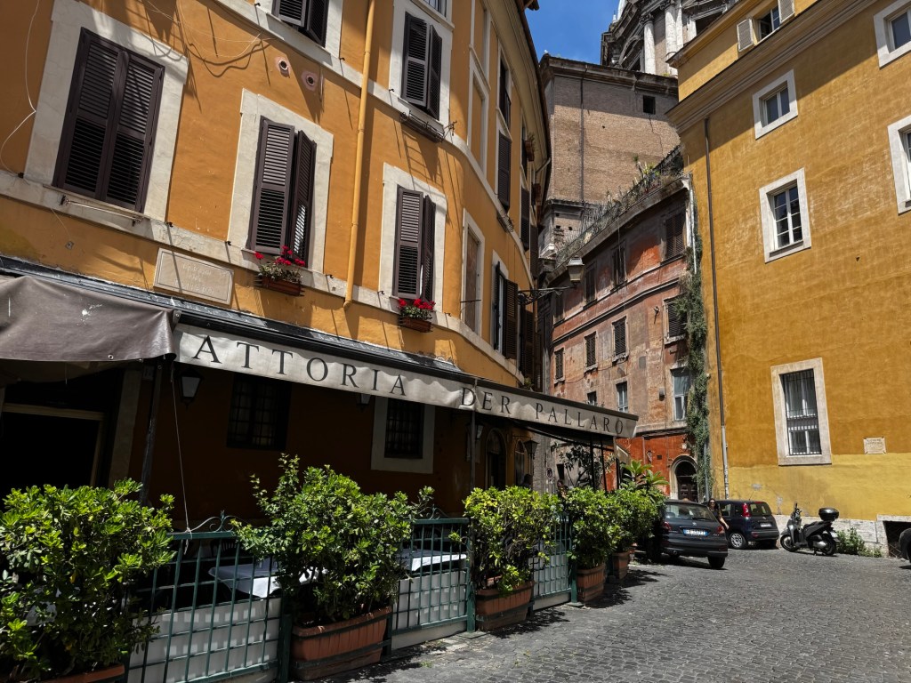 Whatever is going on at Mausoleum of Augustus is going to be spectacular. The fountain in front of the Ara Pacis museum has seen better days. Maybe they should replace with a manicured grove of cyprus or olives or laurels or all three? I find the via Ripettera on of my favorite thoroughfares. Stopped a used book store and acquired a catalogue of the Bardo. Lovely experience. Browsed jewelry and bags but nothing called my name. An old favorite restaurant that I used to dine at alone but then shuttered has reopened under the same name and new interior. Didn’t call to me either. I remember eating the fixed menu at Trattoria der Pallaro with past students and wonder if they do the same thing and if I would like it 20 years on or if it would spoil the memory. Eating in the remains of the theatre of Pompey was such a thrill then. I wondered if this mosaic shop offers tours and/or demos to student groups. As always, I love the street art.