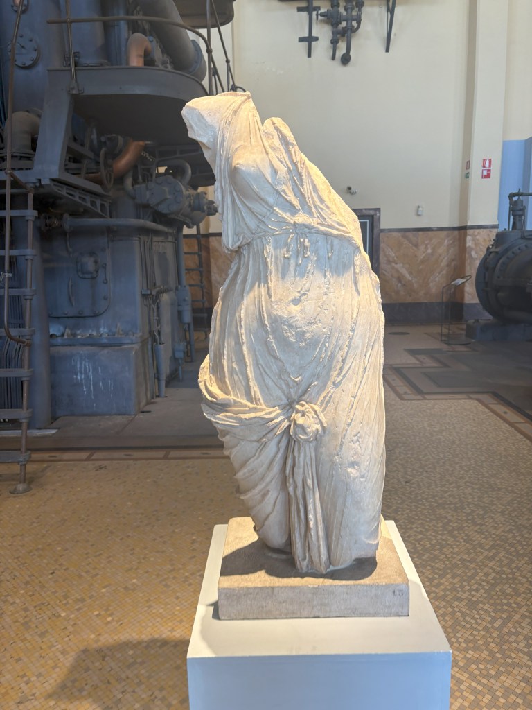 The contrast between the industrialized background and the more classical works interested me. I had not seen a place like it and wasn’t sure I would like it. For a moment, I thought about how people take beautiful brownstones and flip them to look more contemporary, but then it was like, “Wait, this is like the reverse of that.” They kind of made the space follow along with the mosaics and sculptures. I believe the space also shows the idea of the Romans looking back to their ancestors/predecessors in a way. I don’t think that anything was too too jarring or confusing, and I believe that the repurposing of the space is kind of iconic.