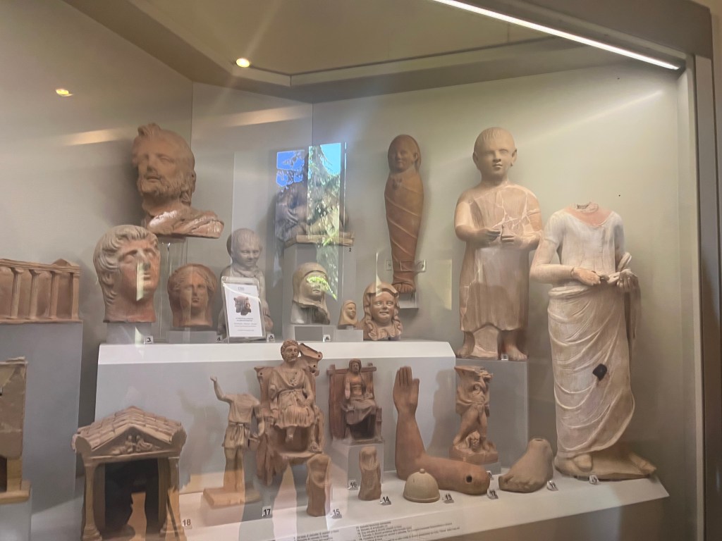 A theme I’ve noticed throughout our classes so far is the role of the individual in communal/organized religion. An example of this we saw were votives, or objects that represented one’s prayer to a deity in the form of a terracotta statue. By imagining the past in a way where we can put feelings, wishes, or passions to the people then, it can become a lot easier for us to put ourselves in an ancient Etruscan’s shoes. Along with smaller objects of individual importance, large buildings or structures of communal importance have also been preserved very well. What I believe survives is what was important to people throughout a long period of time, which is why so many temples are fully or partially standing as constant places of worship and as places for building community. As discussed in Peter J. Aicher’s Rome Alive, there were settlements in Rome’s area long before the city’s establishment, but the mythos of Rome’s origins centuries later was developed for building a historic tradition and/or representing the sociopolitical struggles felt by the region’s people before the city’s time (Aicher 11). Ancient Romans not only felt a fascination with faraway lands such as Egypt, but also a fascination with their ancestors.