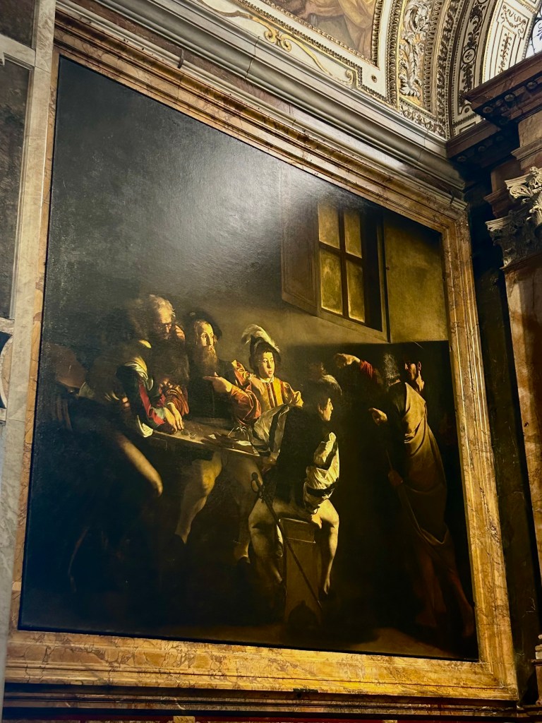 Nothing was messy and confusing today, it was all clean. What reminded me of NYC was actually something I accidentally stumbled upon today. I walked into Church of San Luigi dei Francesi and saw Caravaggio’s “Calling of St. Matthew.” This was a painting I extensively learned about in NYC in my art history class from high school, and it is one of my favorites, so it was pretty great that I accidentally saw it today.