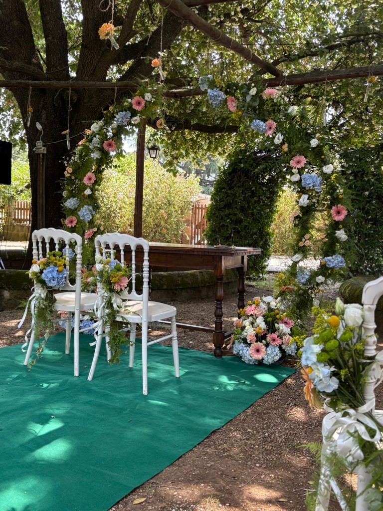 The wedding venue was absolutely gorgeous, and the setup for the ceremony was so charming. Natural flowers wrapped around every pole, around the arch, and hung from little vases from the pergola overhead. The music was nice, though a bit loud at times – soft covers of some rock and pop songs. We were one of the first to arrive, but shortly after people started to trickle in. I got a little choked up seeing family that I haven’t seen in years – and most of them didn’t know I was here so it was a beautiful surprise.