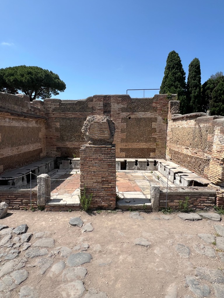 Ostia was a wonderful experience for me. While I continue to enjoy my time in Rome immensely, Ostia elicited a different feeling. As I have written about (along with most of my classmates I believe) part of the excitement of Rome is to see the many different important eras in history built on top of each other. While Ostia has some reminders of the passage of time (the swastikas shoved into the otherwise striking mosaics, for example), it mostly feels stuck in the past, so much so that I often felt like I was walking with the ghosts of its inhabitants, still carrying on their daily activities.