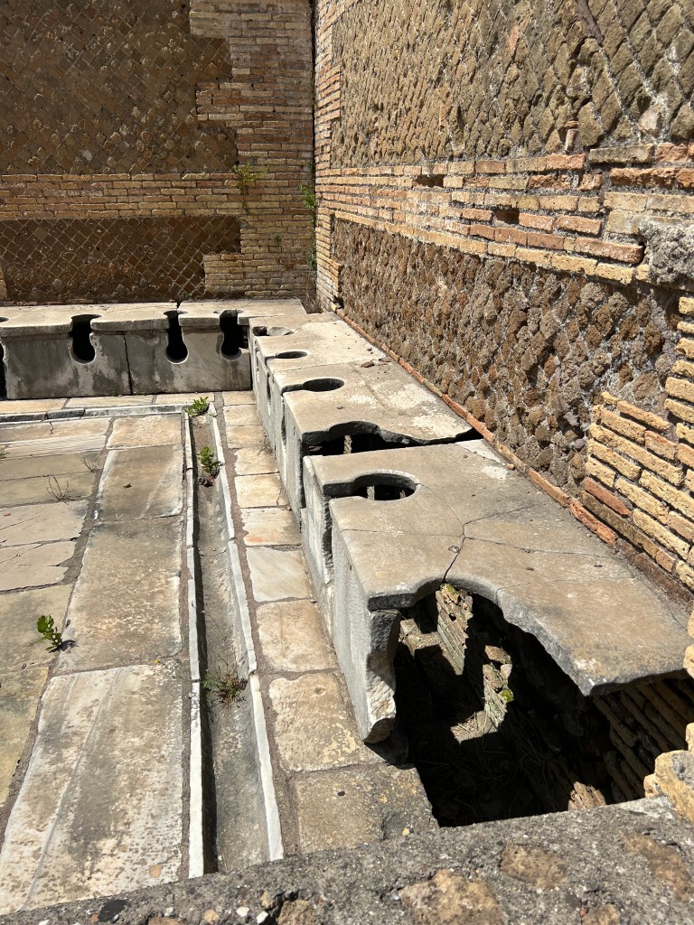 This feeling was punctuated by two locations in the city: first, the tavern we stopped in as a group. Seeing the bar, the spot where wine was placed, it was all slightly surreal, as we stood there imagining ourselves as citizens enjoying the company of others. The second was the ancient toilets, which I have attached a photo of. The little illustration makes this even easier to visualize, as uncomfortable and pungent as it must have been. I hate public bathrooms today, I can’t imagine having to rely on these.