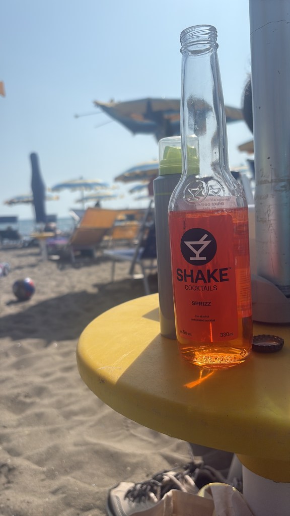 I was super excited to go to the beach and got a bottle of Aperol spritz, which wasn’t bad at all. I loved that the sand was a darker color and all the shells that were on the shore. I kept getting the moment of “Omg I am in Italy”. I liked floating in the water and how cold it was on my skin, especially after being in the sun all day. I went into the water twice, but I wish I were there more because my weekends feel long yet limited. Maybe on Monday, I will try to make my way back to the beach so that I can float in the water. The train ride back was fine, extremely packed, and so was the bus, but that’s expected for a Monday. Overall, the day was really fun, and it made me want to return to Ostia.
