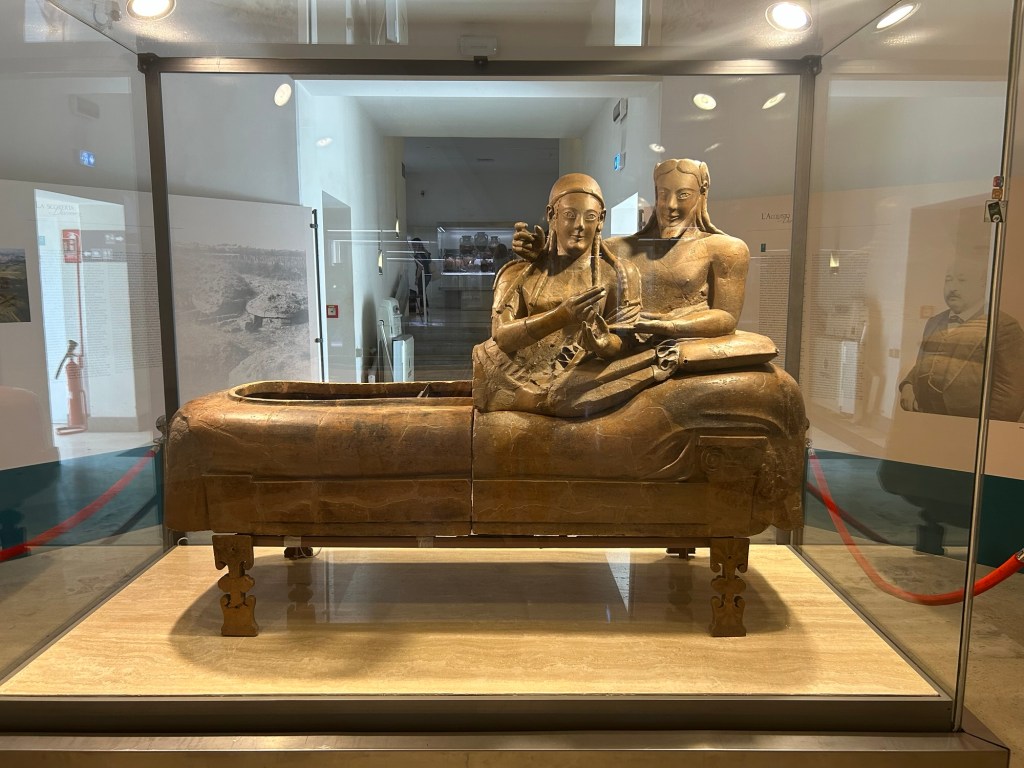 At this point, I’m expecting to meet a celebrity, an art piece(ancient or not) I’ve learned about, on a daily basis. I love how the Etruscans decided to use the lying down pose as the lid design for their sarcophagus. As a professional bed rotter(self-proclaimed), it is indeed a very comfortable pose that allows you to enjoy leisure moments and perform leisure activities such as reading, gaming, eating, watching a film, etc. The message I’m receiving from this design is that the Etruscans have a positive attitude towards the afterlife. No fear, just accept it in a comfortable pose when it comes.