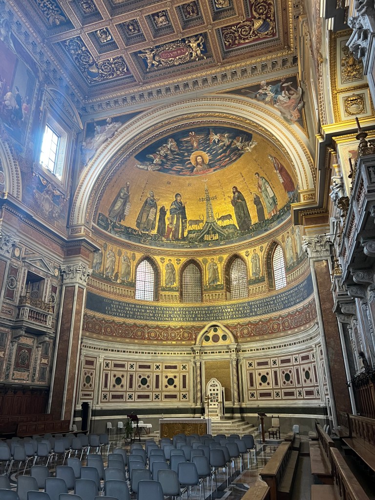 The Basilica was stunning. It was founded in 324 and is Rome’s oldest public church. Much like the city itself, to walk through the church is to experience centuries upon centuries all at once; it has suffered earthquakes, sacks, fires, and more, but the traces of that extensive history are bared to the onlooker. Particularly striking was the golden mosaic at the front of the church.
