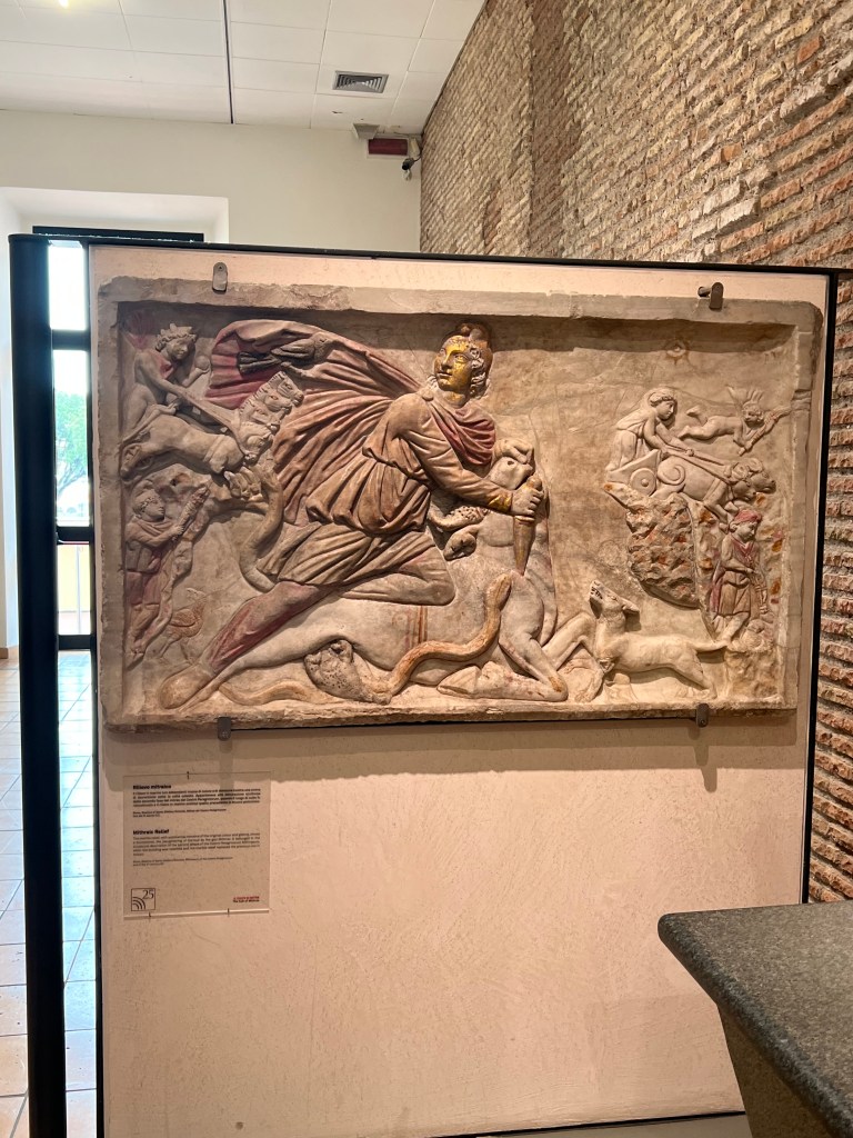 Our next presentation was given by Dante, the topic being Mithraism. This floored me. Until this trip, I had no knowledge of the cult. Dante gave us a great overview of what we do know about them, and possible theories to fill in the gaps. I’d seen art relating to Mithraism before, but I hadn’t recognized it as such.