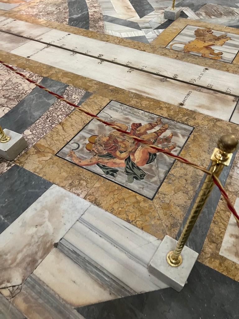 The splendor of this church, unsurprisingly, stirred a Christian fervor in me. Out of all the churches built in the ruins of the ancient Romans, this was my favorite. However, a slightly surprising aspect was the inclusion of Zodiac signs on the meridian line. While the depiction of them is not forbidden by the Catholic Church, belief in them is. I didn’t expect to see them in a Catholic space (not a judgment).