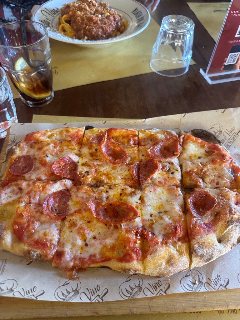 After the class, I actually had the drive to go and do something (a very rare occurrence). Me and a few friends wandered a bit and visited the Lego store, exchanged some cash, and went out to eat. This restaurant was so blatantly touristy, but they actually had good prices, so I couldn’t really complain. I had my first pizza since arriving! Finally! I love spicy, so I ordered a diavola, which in hindsight is basically the same as an American pepperoni pizza.