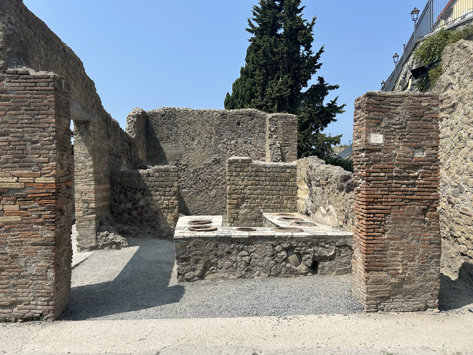 With the limited time spent in Pompeii, I understood why our class chose Herculaneum over Pompeii: this place is huge, and it is impossible to see everything in just one morning. The ruins from both locations share some similarities, from the house structure, fresco, mosaic, and even cookware.