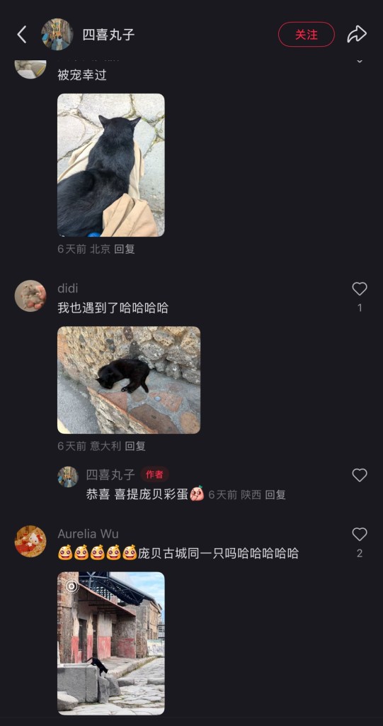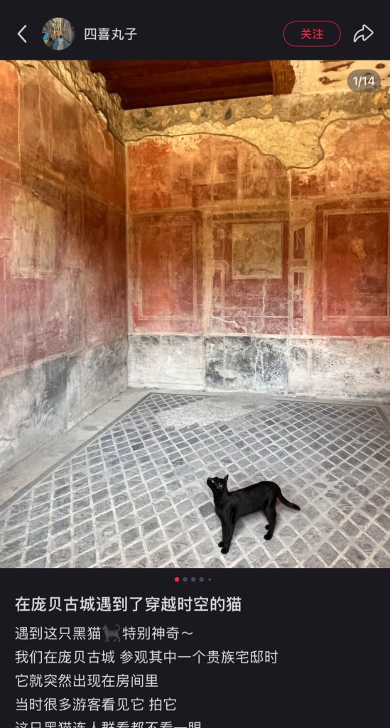 The black cat, which spotted in pompeii, turns out to be a celebraty cat on RedNotes. By observing the toe beans, I confirm that these two are the same cat! I could spent my whole entire day sitting next to her. If If we were to say Rome is the territory of the birds, then Herculaneum and Pompeii are definitely the territory of the cats. Would you rather be a bird living in Rome or be a cat living in Herculaneum/Pompeii? Woo, decision, decision.