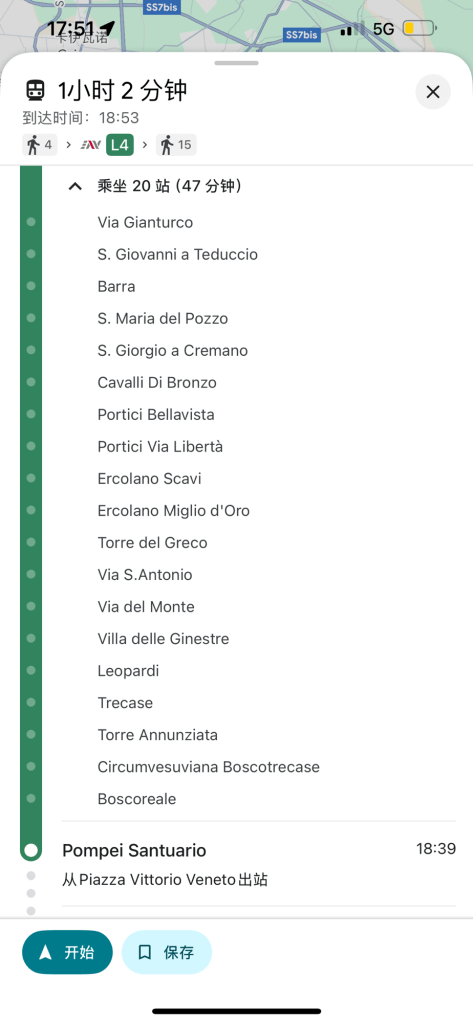 I should take part in the responsibility of us being stuck in Poggiomarino. I was tracking on the map to ensure we were heading in the correct direction: our train’s path runs above  Mount Vesuvius, whereas the correct path should’ve run beneath Mount Vesuvius. I did not speak to Patrick at the time when I noticed something was off I put too much trust in him because our class had a great TA last time, so I thought to myself that the new one would be just as great. What can I say, live and learn.