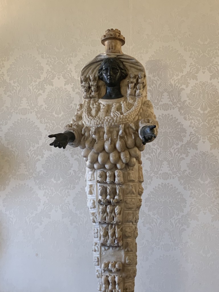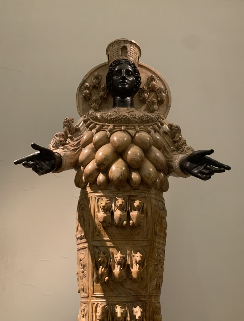 I want to compare the sculpture of Diana Efesina (2nd century BCE) from the Capitoline Museums and the Artemis Ephesia (2nd century CE), from the Museo Archeologico Nazionale di Napoli. However, I want to point out their similarities, despite being dated two centuries apart from each other, to show just how strong and rich the visual language of the Roman empire was, in spite of, or perhaps because of the syncretism that occurred in the ancient world. This additionally calls back to the “Magna Mater’ I discussed in my previous post regarding the exhibit at the Temple of Romulus.